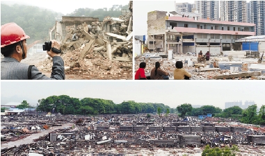 我省“三改一拆”行动开展以来,声势浩大,强力推进。图①宁波江北区螺钉厂地块正在拆违。图②椒江区云西路“三改一拆”现场。图③天台县水南村拆违现场。