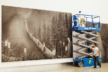 浙江美术馆工作人员正在布展。本报记者 吴煌 摄