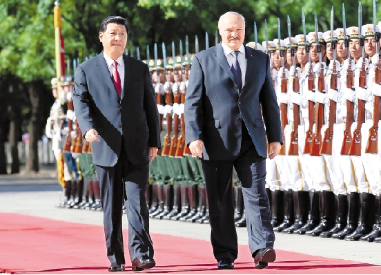 7月16日,国家主席习近平在北京人民大会堂同白俄罗斯总统卢卡申科举行会谈。这是会谈前,习近平在人民大会堂东门外广场为卢卡申科举行欢迎仪式。 新华社记者 庞兴雷 摄