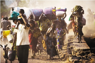 7月15日,逃难的平民经过刚果(金)戈马附近的郊区。刚果(金)政府当日说,政府军14日与反政府武装“M23运动”展开战斗,导致至少130人死亡,其中包括10名政府军士兵。 新华社发