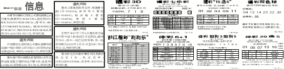 具体中奖情况见本报明日公告。本信息若有误以公证数据为准。