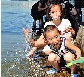 | 通讯员 温君凯:以前熟溪上游有一个化工厂,现在那里是一个大公园。随着政府治水的大魄力,熟溪水越来越干净,小鱼虾也更多了。洗衣裳的阿姨、钓鱼的大叔、嬉水的小孩子,构成了熟溪边和谐的风景线。听,玩水的小男孩在说:“看,我家门口的河水多清澈!” |