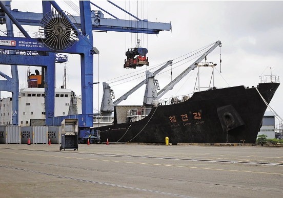 7月16日,一艘从古巴驶往朝鲜的船只停靠在巴拿马曼萨尼约港附近。 新华社发