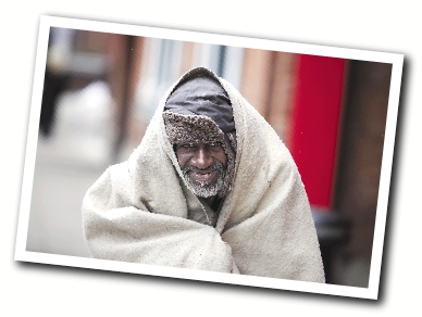 图为2013年2月24日,一名无家可归的男子披着毯子走在美国密歇根州底特律市一条街道上。 新华社发