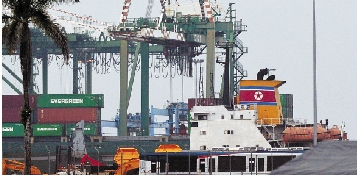 这是7月16日在巴拿马曼萨尼约港拍摄的疑似朝鲜军火船。 新华社发