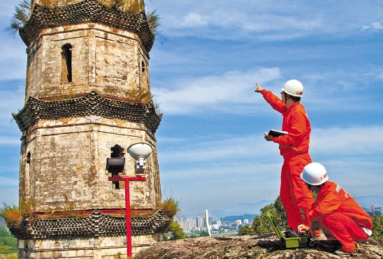 丽水厦河塔是该市东大门的标志性古建筑。建设中的金丽温高铁将从厦河塔脚下碧云山中穿山而过,铁路建设部门为保护厦河塔,不惜减慢施工进度、加大成本投入,目前已采用静态爆破技术进行施工作业。图为施工人员用专业仪器监测既有线铁路行车时产生的震动频率对厦河塔造成的影响,为塔下隧道施工提供技术数据参数。 邵力 摄 |