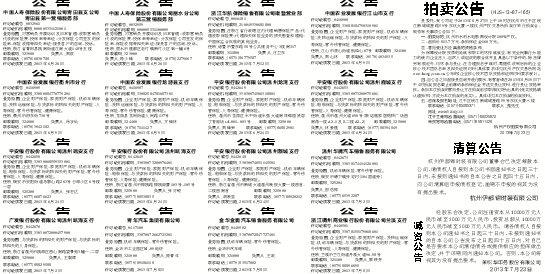 受委托,我公司定于2013年8月27日上午10时在杭州市江干区钱江新城城星路59号东杭大厦六楼杭州产权交易所拍卖厅举行拍卖会,现将有关事项公告如下: