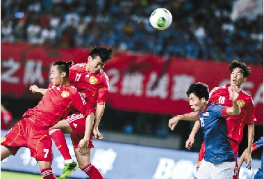 7月22日,中国队球员张卫(左)在比赛中带球过人。当日,在江苏省常熟市举行的中国足协中国之队U22挑战赛第二场比赛中,中国22岁以下青年队以6比2战胜马来西亚青年队。 新华社发