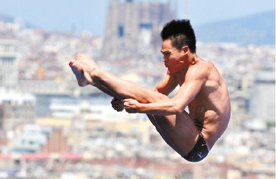 7月22日,中国选手李世鑫在男子一米板决赛中。当日,在第15届世界游泳锦标赛跳水男子一米板决赛中,中国选手李世鑫以460.95分夺得金牌。 新华社发