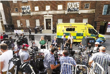 7月22日,大批媒体记者聚集在英国伦敦圣玛丽医院门口。英国威廉王子和妻子凯特·米德尔顿的宝宝没有如外界猜测的那样于上周降生。“王室宝宝”的“迟到”可急坏了连续3周在圣玛丽医院门口“安营扎寨”的媒体记者。 新华社发