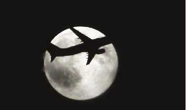 | 7月22日晚上,又圆又大的“超级月亮”再临杭城。这是因为7月22日凌晨4时23分,月亮距离地球只有358401公里。7月23日凌晨2时16分,月球、地球和太阳排成近似一条直线,此时月亮最圆。图为7月22日晚,一架飞机“掠”过夜空,仿佛在“奔月”。 本报记者 钱璐斌 摄 |