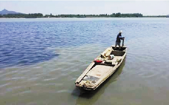 大源溪流出的黑水和清澈的富春江水泾渭分明。 包敦远 摄