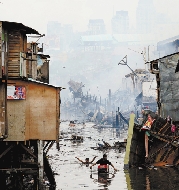 7月24日,一场大火袭击了菲律宾首都马尼拉的贫民区,约200座房子被烧毁。图为人们寻找可用物品。