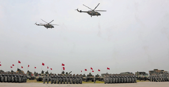 7月23日,在“和平使命—2013”中俄联合反恐军事演习誓师动员大会暨出发仪式上,我军参演部队集结。 新华社发(李祥辉 摄)