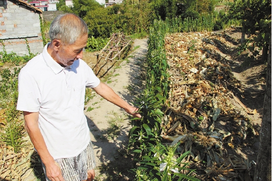 村民许祖绳在田边感叹,要不是屋后有口水塘,大豆都种不下去。 杨振华 摄