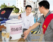 连日高温,宁波公交总公司永安公司在加气站设立临时免费茶水摊,让过往司机在加燃气时收获一分清凉。