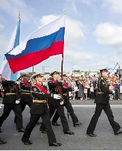 7月28日,俄罗斯海军在圣彼得堡涅瓦河畔接受检阅。当日,俄罗斯全国和海军各舰队举行庆祝活动,欢庆“海军日”。每年7月的最后一个星期日是俄罗斯“海军日”。 新华社发