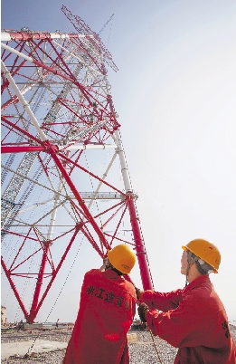 日前,在位于玉环县大连屿濒临乐清湾,由浙江省送变电工程公司负责施工的省内500千伏输电线路最高塔——500千伏玉环变—乐清变双回输电线路工程乐清湾大跨越10号高塔顺利结顶。该塔高254米,重2903吨。