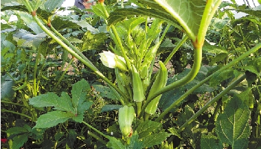 武义,雨后的秋葵一片嫩绿。 程国平 摄