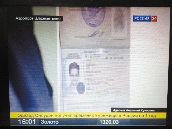 这张8月1日俄罗斯国家电视24台视频截图显示的是关于斯诺登的新闻报道。 新华社发