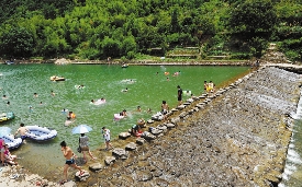 全长22公里的芦茨溪,成了沿途群众的天然浴场。