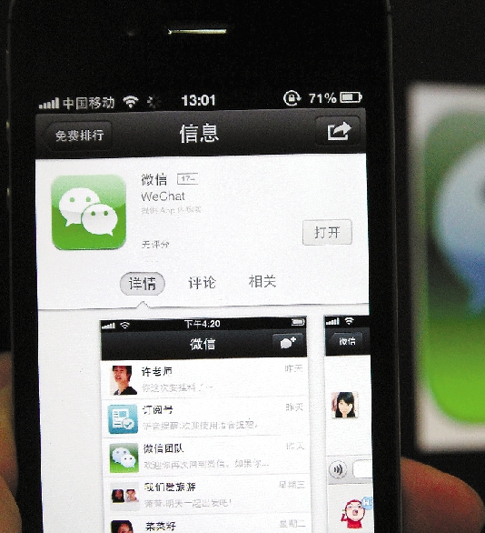 8月5日上午,微信5.0版本上线! 本报记者 李选 摄