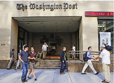 8月5日,在美国华盛顿,人们从《华盛顿邮报》总部办公大楼前走过。 新华社发