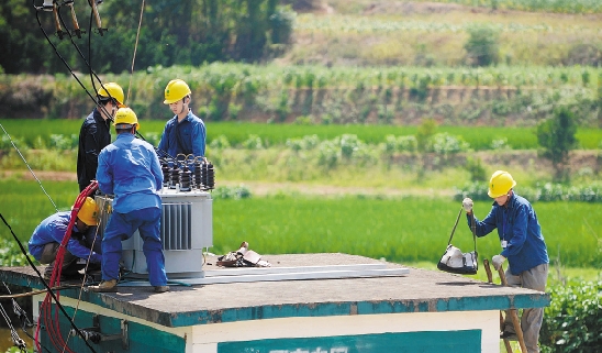 连日来,浙江电力公司800多支小分队开赴全省各地田间地头,支援农电改造,保证灌溉供电。图为8月15日,电力小分队正在给龙游县西何村变压器进行紧急扩容增倍。