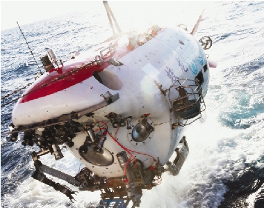 当地时间8月17日(北京时间8月18日),“蛟龙”号载人潜水器完成第二航段最后一潜满载成果安全返回。 新华社记者 余晓洁 摄