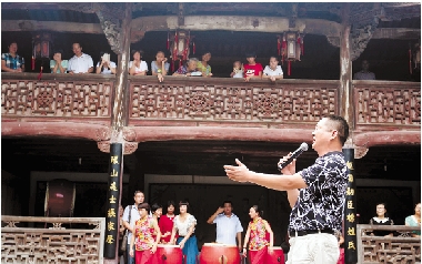 8月22日,江山大陈乡大陈村文化礼堂内,村民在演唱村歌。当天,该村文化礼堂正式启用。衢州充分利用农村特有的自然和文化资源,丰富文化礼堂内涵,打造“一村一景”、“一堂一品”。 衢州日报记者 徐元昌 摄
