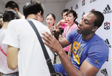 8月22日,NBA球星霍华德来杭州,与杭州球迷相聚,与球迷互动,为球迷签名。 记者 潘良干 摄