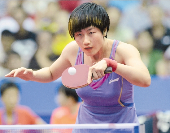 8月22日,在河北省保定市举行的世界乒乓球女子攻削大战比赛中,中国选手丁宁以3比0战胜乌克兰选手比兰卡。图为丁宁在比赛中回球。 新华社发