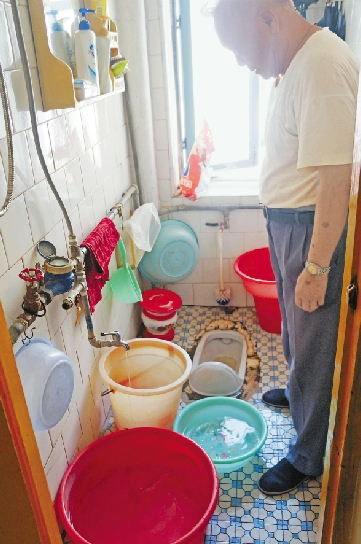 整治前,8楼居民家中开到最大时的水流。 蒋剑俊 摄