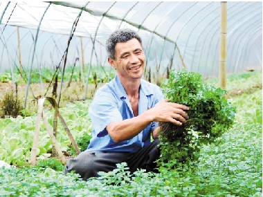昨天上午,建德市新安江街道黄泥墩村蔬菜种植大户王发生正在大棚里采收时令蔬菜,市场批发价格平均每公斤4元左右。王发生采取多品种栽种后,亩产值可达8000元至10000元。 宁文武 摄