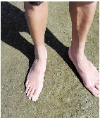 长期在江边作业,渔民脚上会出现不痒只痛的红斑。