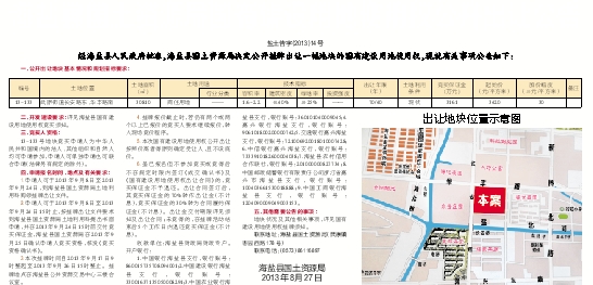 1.申请人可于2013年9月8日至2013年9月24日,到海盐县国土资源局土地利用科购领挂牌出让文件。