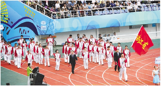 浙江省体育代表团在开幕式上入场。 本报记者 潘良干 摄