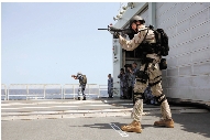中美双方特战队员在哈尔滨舰上进行轻武器射击演练。
