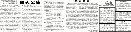未尽事宜详见拍卖专场资料,或登录人民法院诉讼资产网(www.rmfysszc.gov.cn)及拍卖公司网站(亚德拍卖www.nbyade.com;之江拍卖www.nbzjpm.com)查询。