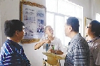 朱友宝(左二)在纪念馆里讲解方国珍传奇。