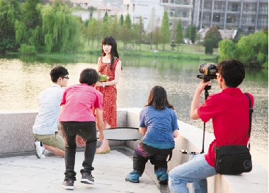 9月2日,浙江农林大学学生通讯社的学生,在校园里拍摄一部反映多姿多彩大学生活的微电影,希望新生看后能够帮助他们尽快适应大学生活。陈胜伟 摄