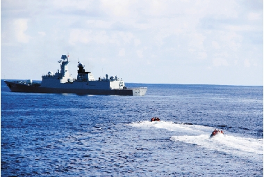 临检拿捕小组搭乘小艇快速驶向“可疑船舶”(8月31日摄)。 新华社发(王瑶 摄)