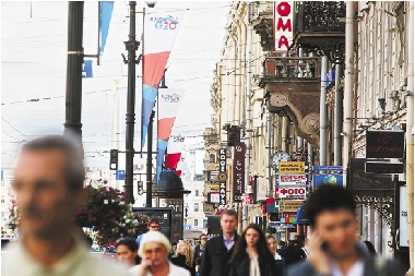 9月3日,在俄罗斯圣彼得堡,人们走在挂满二十国集团峰会标识旗帜的涅瓦大街上。二十国集团(G20)领导人第八次峰会将于9月5日至6日在俄罗斯圣彼得堡举行。此次峰会主题为促进经济增长和创造就业岗位,将关注世界经济、就业和投资、发展、贸易等议题。为了承办此次峰会,主办方在交通、安保等各方面做了大量精心准备。 新华社记者 鲁金博 摄 |