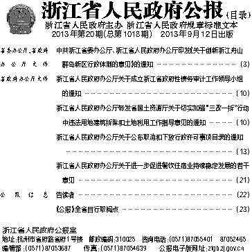 编辑部:(0571)87053687 传真:(0571)87054639 公报电子版网址:zfgb.zj.gov.cn