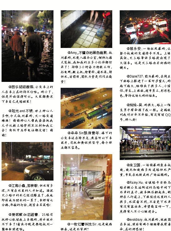 @阳光and不锈:世上好心人多啊,今天杭州暴雨,文一路交通瘫痪!谢谢好心人帮我婆婆把我儿子从教工路背到宋江村和我汇合!匆忙中名字电话都没留!谢谢!