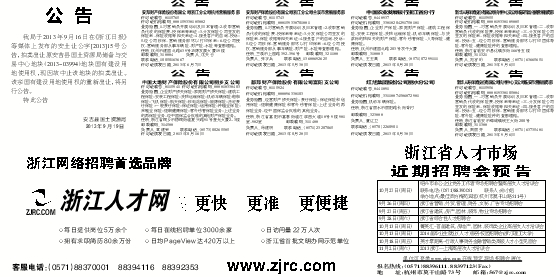 | 9月26日(周四) | 浙江省营销、外贸、管理、财务、文秘、广告专场招聘会 |