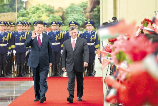 9月18日,国家主席习近平在北京人民大会堂同约旦国王阿卜杜拉二世举行会谈。会谈前,习近平在人民大会堂北大厅为阿卜杜拉二世举行欢迎仪式。 新华社记者 马占成 摄