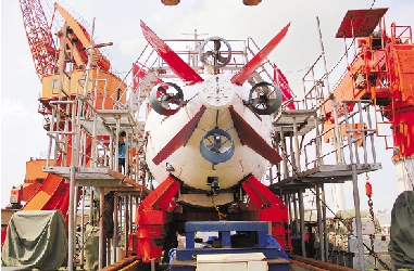 9月19日,搭载“蛟龙”号载人潜水器的“向阳红09”缓缓停靠江苏省江阴市苏南国际码头。2013年试验性应用性航次是“蛟龙”从冲击深度的海试转向试验性应用的“处女航”。6月10日起航以来,来自高校和科研院所的10位科学家成为“蛟龙”的首批乘客,从深海带回了珊瑚、海参、海葵等71种共390只生物、161枚结核、8块结壳、32块岩石和180公斤沉积物等样品。 新华社发 |