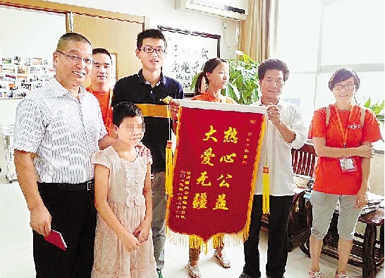小凯(左二)和义工分队、骨科医院的叔叔阿姨在一起。