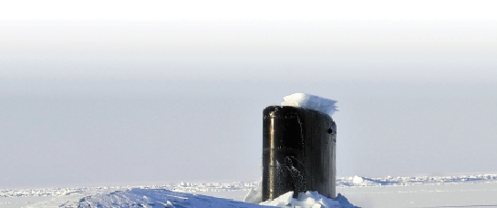 在北冰洋地区军演的美国海军攻击型核潜艇“安纳波利斯”号破冰而出。新华社发